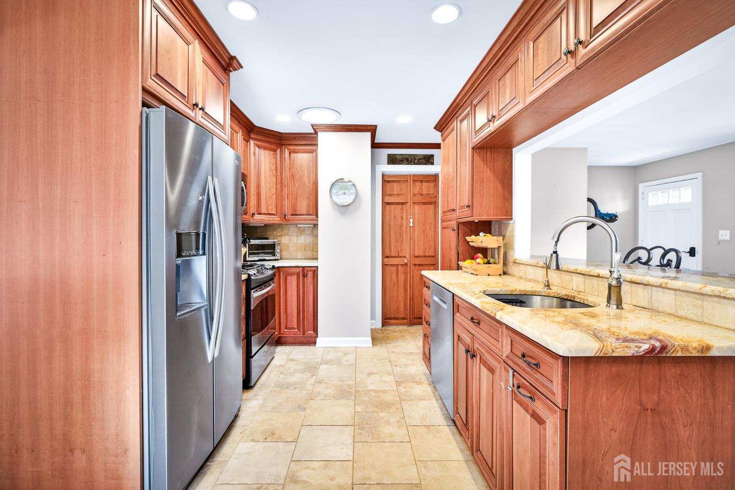 This beautifully maintained 4-bedroom split-level home offers the perfect blend of indoor-outdoor living! A bright and inviting main level with a bay window in the living room, kitchen with a breakfast bar. SS appliances and granite counters. As you step down to the ground level there is a bedroom/office space and a spacious family room, ideal for movie nights or entertaining. French doors lead to a beautiful outdoor oasis, complete with a 900 sq. ft paver patio with built in propane grill, accent lighting and fenced in yard, all perfect for hosting gatherings, summer barbeques, or simply relaxing and enjoying the fire pit! The yard offers a shed for extra storage and plenty of space for relaxation which makes it a true extension of the home. Upstairs you will find a full bath and 3 bedrooms with the primary bedroom offering a walk in closet. Maintenance free exterior. Close to schools, shopping and transportation! CJMLS 2612805R