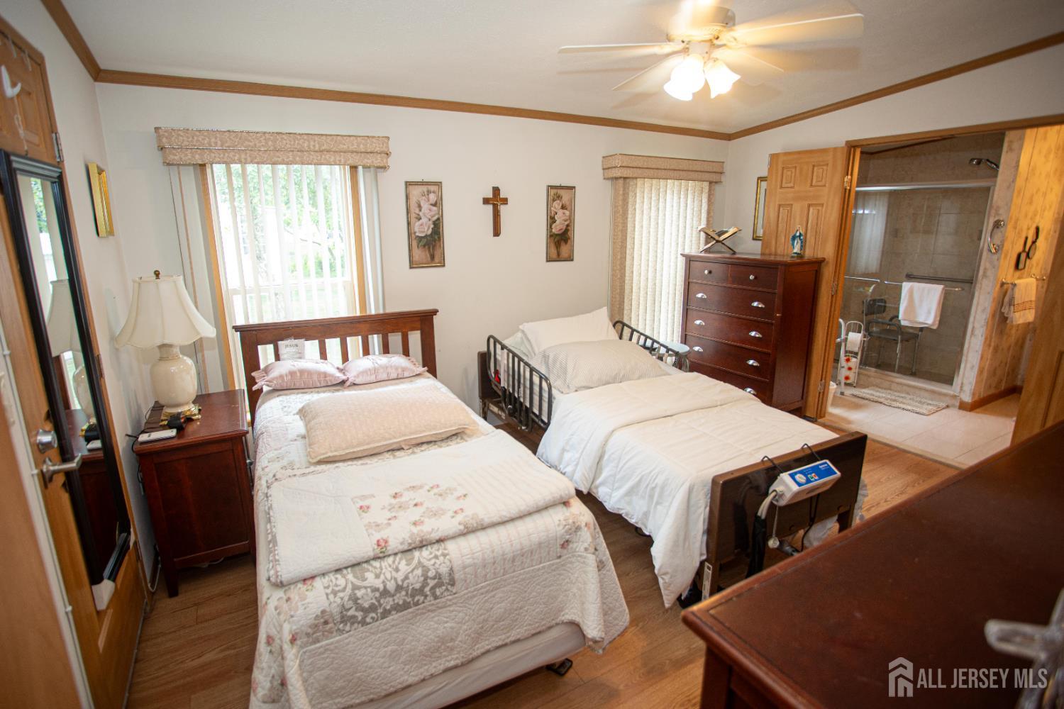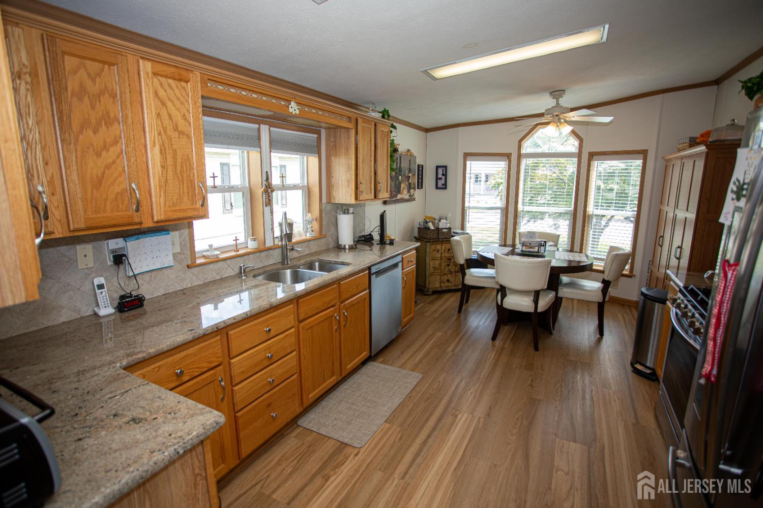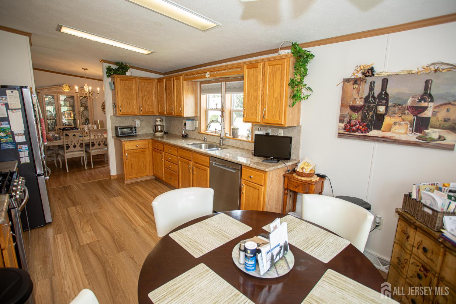 This is a great move in condition Mobile home with lots of updates. Home boasts Eat in kitchen with granite countertops and Stainless steel appliances. New Laminate wood flooring and custom blinds*Formal dining room and big living room*Enter thru double doors to Master bedroom full bath with a huge redone stall shower fully tiled with built in seat/glass doors*double sinks and nice linen closet*Big walk in closet*nice size 2nd bedroom with new laminate wood floors**Newer HWH*2 year old roof*Redone blacktop driveway with newer paver platform to nice big front deck with trex planking*Home is in move in condition* CJMLS 2614201R