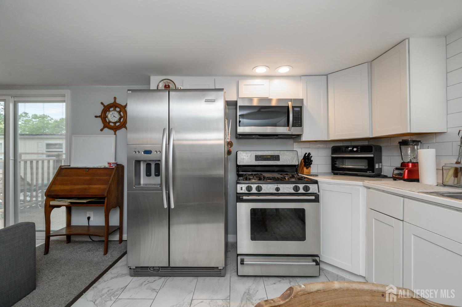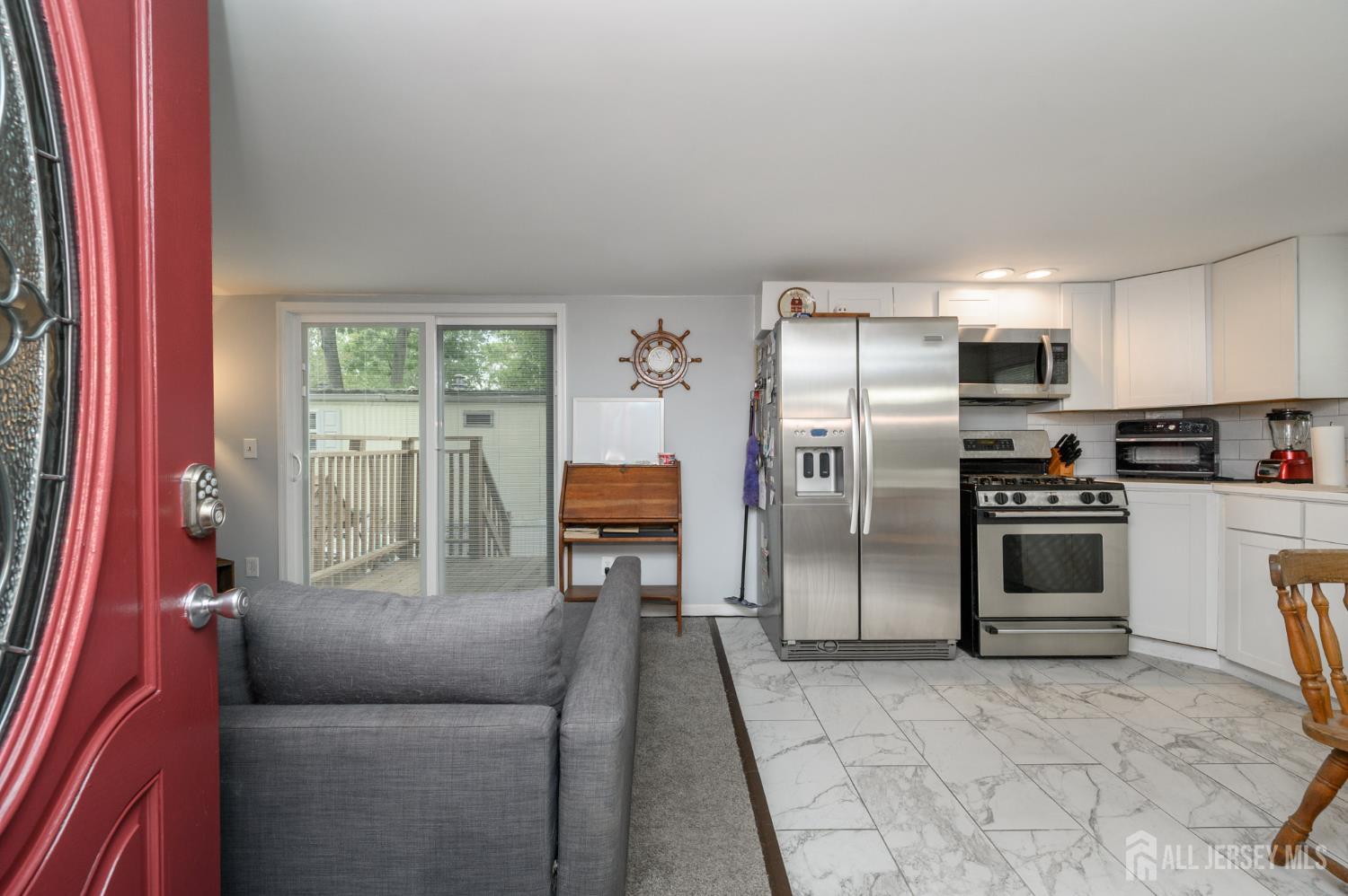 Welcome to this lovely 1 Bed 1 Bath Mobile home in the vibrant Roberts 55+ Community in thriving Toms River. Well maintained with plenty of modern upgrades all through, move-in-ready and waiting for you! Situated in a prime location, close to the Jersey Shore, shopping, dining, medical centers, places of worship, easy access to Route 9 and public transportation to NYC. This charming unit is more than meets the eye, offering a light and bright sunroom that welcomes you into a spacious open concept layout for comfortable and accessible living. Living room opens to the kitchen and holds sliders to the rear deck and patio for easy al fresco dining. Updated eat-in-kitchen offers sleek SS appliances, tiled flooring with decorative backsplash, recessed lighting, ample cabinet storage, and sun soaked dinette space. Upgraded full bath with accessible walk-in shower, convenient in-unit laundry, and 1 generous bedroom rounds out the interior of this gem. Outdoor space features a quaint deck, patio, and on-site parking. This is the perfect opportunity for those looking to downsize and spend their golden years in a sought after community. Don't miss out! Come & see TODAY! CJMLS 2604474R
