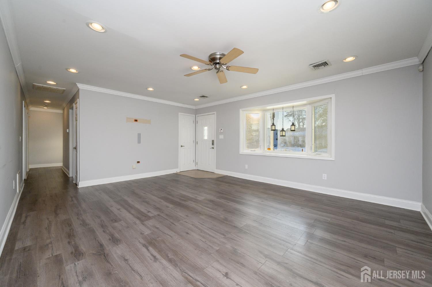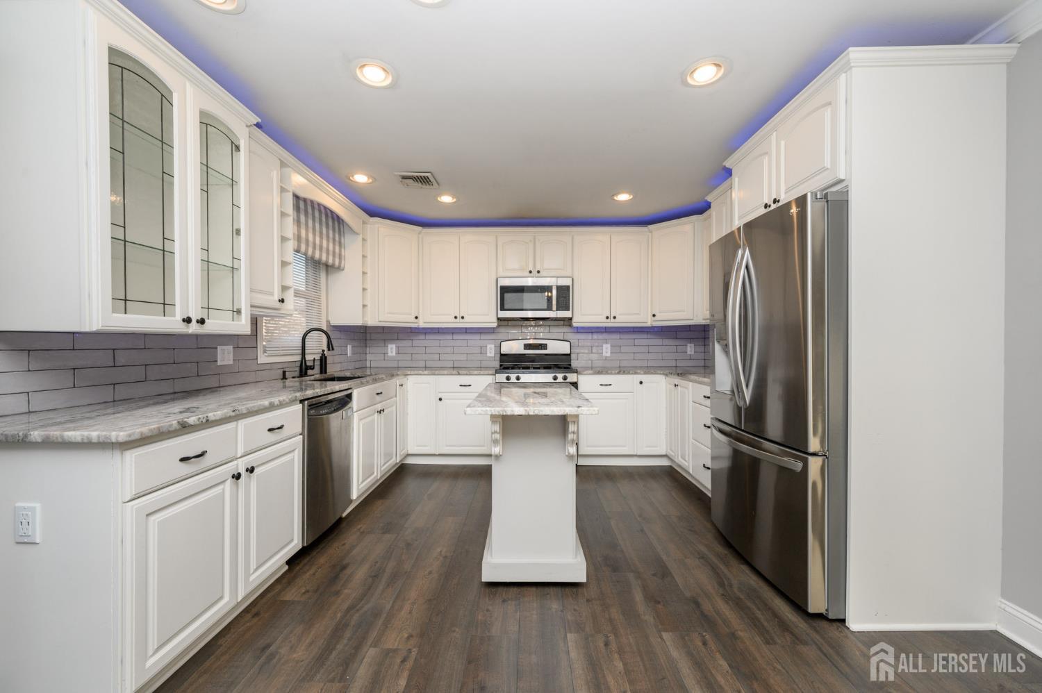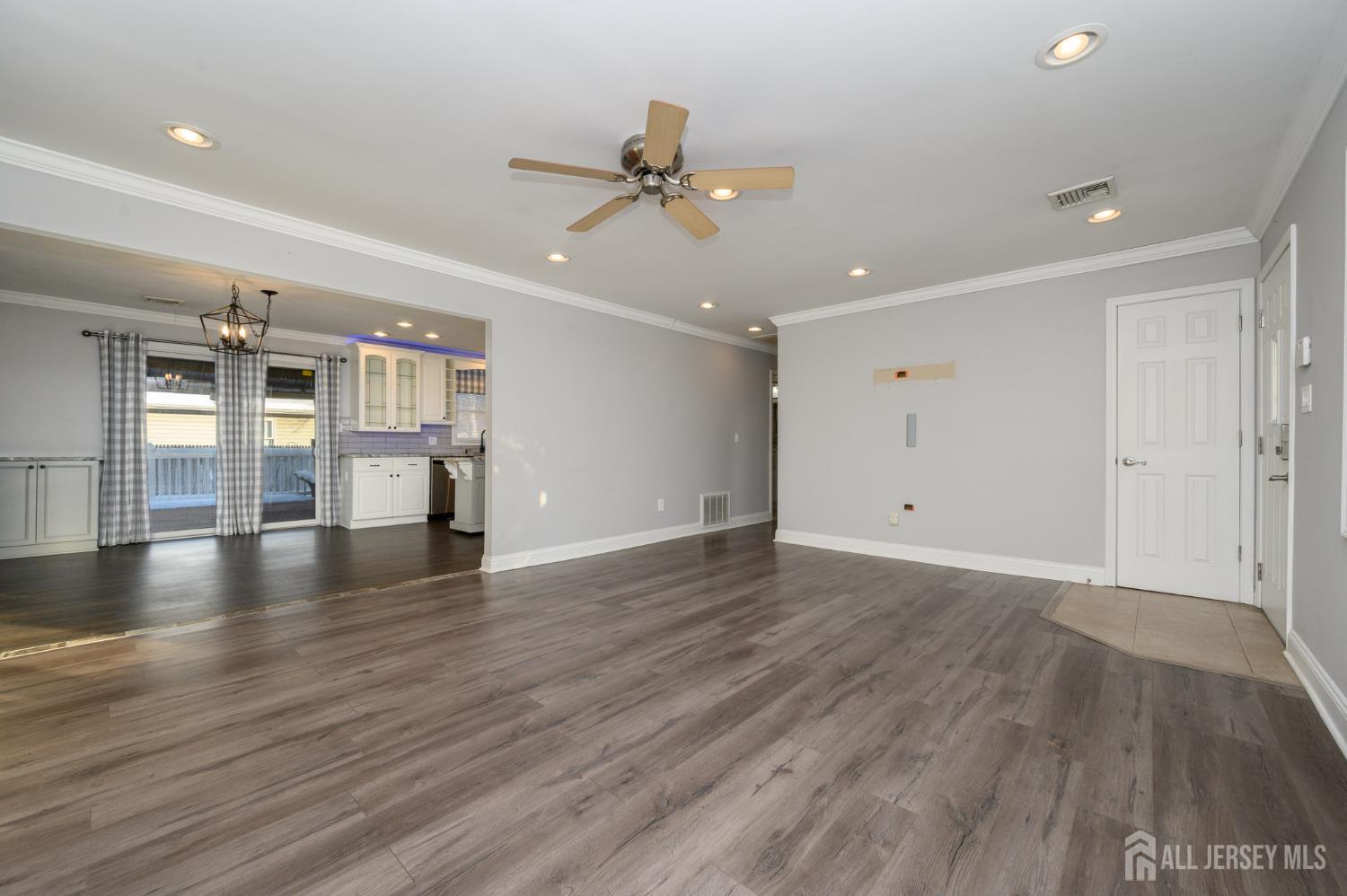 Welcome Home! Beautiful 3 Bed 2 Full Bath Ranch in desirable Toms River is ready and waiting for you. The open front porch welcomes you in to find a spacious light & bright Living Rm featuring a large bay window streaming in tons of natural light, elegant crown molding, recessed lighting and NEW luxe vinyl plank flooring that extends throughout. The Formal Dining Rm is perfect for hosting dinner guests with sliding glass doors to the rear deck for easy al fresco dining. The stunning Eat in Kitchen has been recently renovated and features NEW stainless steel appliances, granite counters, textured subway tiled backsplash, and a plethora of premium cabinetry with glass doors & built in wine bottle rack. Laundry on the main level is so convenient, NEW Washer & Dryer included! Down the hall, the main full bath with tub shower + 3 generous Bedrooms inc the Primary Suite. Primary Bedroom boasts it's own private full bath with stall shower. This home also features a NEW HVAC system (2025) and New Furnace (2023). Relax outdoors in the large backyard complete with deck, outdoor canopy, rustic stock tank pool, & storage shed, all fenced in for your privacy. The Oversized Driveway and 1 Car Garage provide ample parks space for you and guests. Close to shopping, dining, parks, and schools + public transportation and major rds for easy commuting. Don't wait, come and See TODAY! CJMLS 2608532R