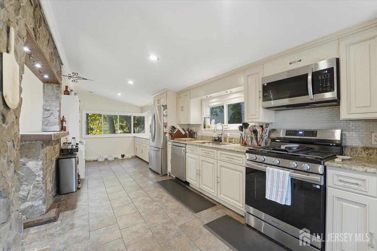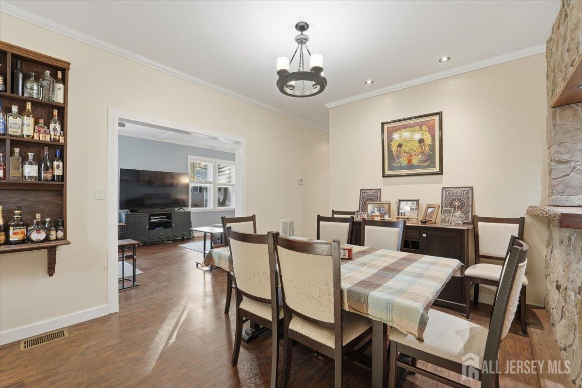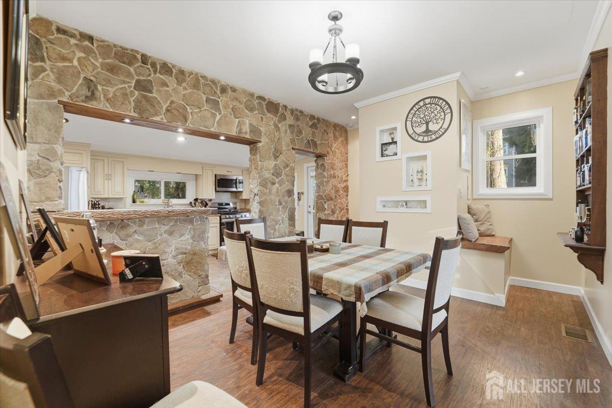 Welcome to this beautifully crafted 3-bedroom, 2-bath home ideally located near all major transportation routes. From the moment you enter the sun-filled foyer, you'll be captivated by the home's warmth and character. The well-lit living room offers a cozy wood-burning fireplace, perfect for winter nights. Hosting dinner? The gourmet kitchen is a chef's dream with expansive cabinetry, granite countertops, and a formal dining room featuring a stunning custom-built natural stone wall with handcrafted wood accents a true conversation piece for entertaining. Enjoy the sought-after open-concept design that flows seamlessly throughout. Convenience meets comfort with two spacious bedrooms and a full bath located on the first floor. The fully finished basement provides additional living space and includes another beautifully updated full bath. Step outside to an entertainer's paradise a custom wood-burning grill surrounded by extensive hardscaping, plus a handmade picnic table crafted by the previous owner, a true woodworking enthusiast. Even the staircases inside are handcrafted! A detached garage completes the property, offering an expansive workbench area and plenty of room for parking or projects. This one-of-a-kind home blends charm, craftsmanship, and convenience and it won't last long! CJMLS 2606347R